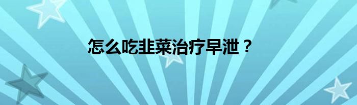 怎么吃韭菜治疗早泄?