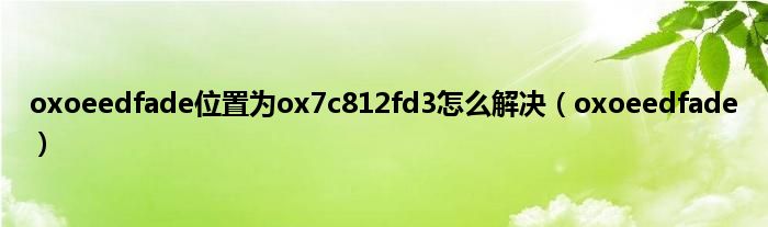 以上就是【oxoeedfade位置为ox7c812fd3怎么解决,oxoeedfade】相关内容。