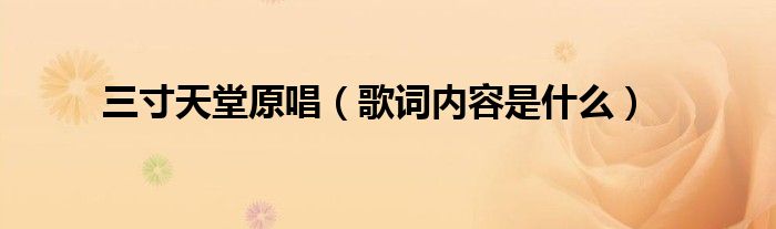 本文,三寸天堂原唱,歌词内容是什么到此就分享完毕,希望对大家有所帮助。