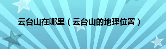 本文,云台山在哪里,云台山的地理位置到此就分享完毕,希望对大家有所帮助。