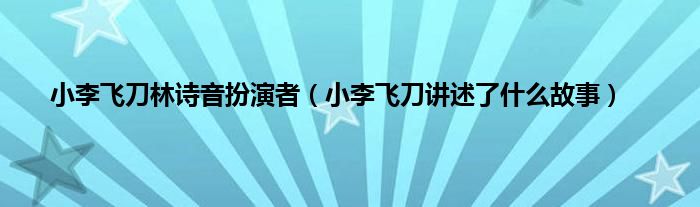 本文,小李飞刀林诗音扮演者,小李飞刀讲述了什么故事到此就分享完毕,希望对大家有所帮助。