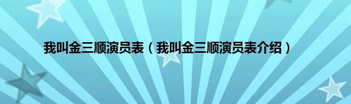 大家好,我叫金三顺演员表,我叫金三顺演员表介绍很多人还不知道,现在让我们一起来看看吧!