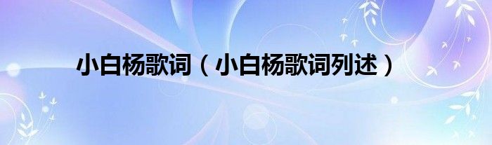 本文,小白杨歌词,小白杨歌词列述到此就分享完毕,希望对大家有所帮助。