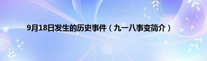 大家好,9月18日发生的历史事件,九一八事变简介很多人还不知道,现在让我们一起来看看吧!