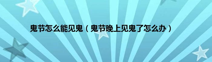 鬼节怎么能见鬼(鬼节晚上见鬼了怎么办)