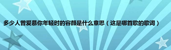 大家好,多少人曾爱慕你年轻时的容颜是什么意思,这是哪首歌的歌词很多人还不知道,现在让我们一起来看看吧!
