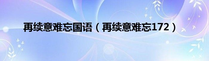 大家好,小问来为大家解答以上问题。再续意难忘国语,再续意难忘172这个很多人还不知道,现在让我们一起来看看吧!